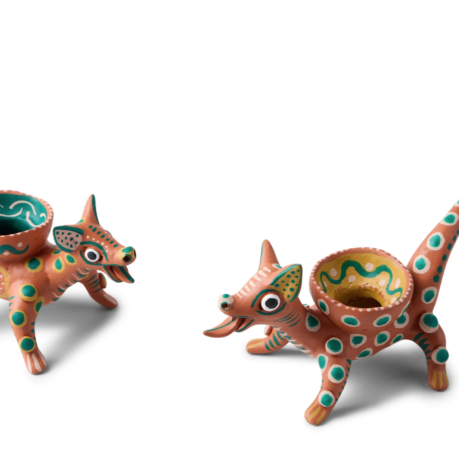The artisans of San Pedro Ocumicho in Michoacán have long used clay to shape the life of their community. These handmade and hand-painted clay sculptures—playful demons and animals—are surprising and satirical reflections of their culture and history. Each figure features unique decorations that make no two completely alike. Sold individually.