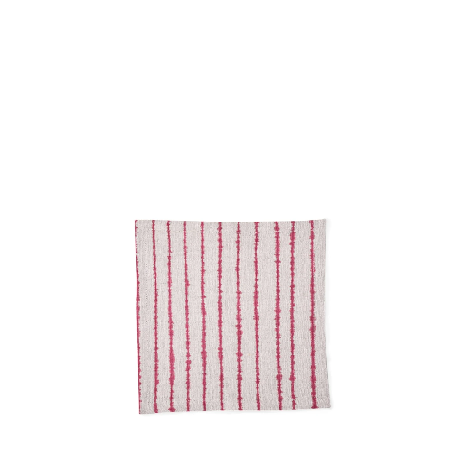 This cocktail napkin features delicate lines across a sturdy linen ground. Each line is painted by hand and varies in organic ways adding subtle texture to the simple design. The color is inspired by our Winter Seasonal glaze Cranberry. Made exclusively for Heath by Cathy Callahan as part of our Winter Seasonal collection.