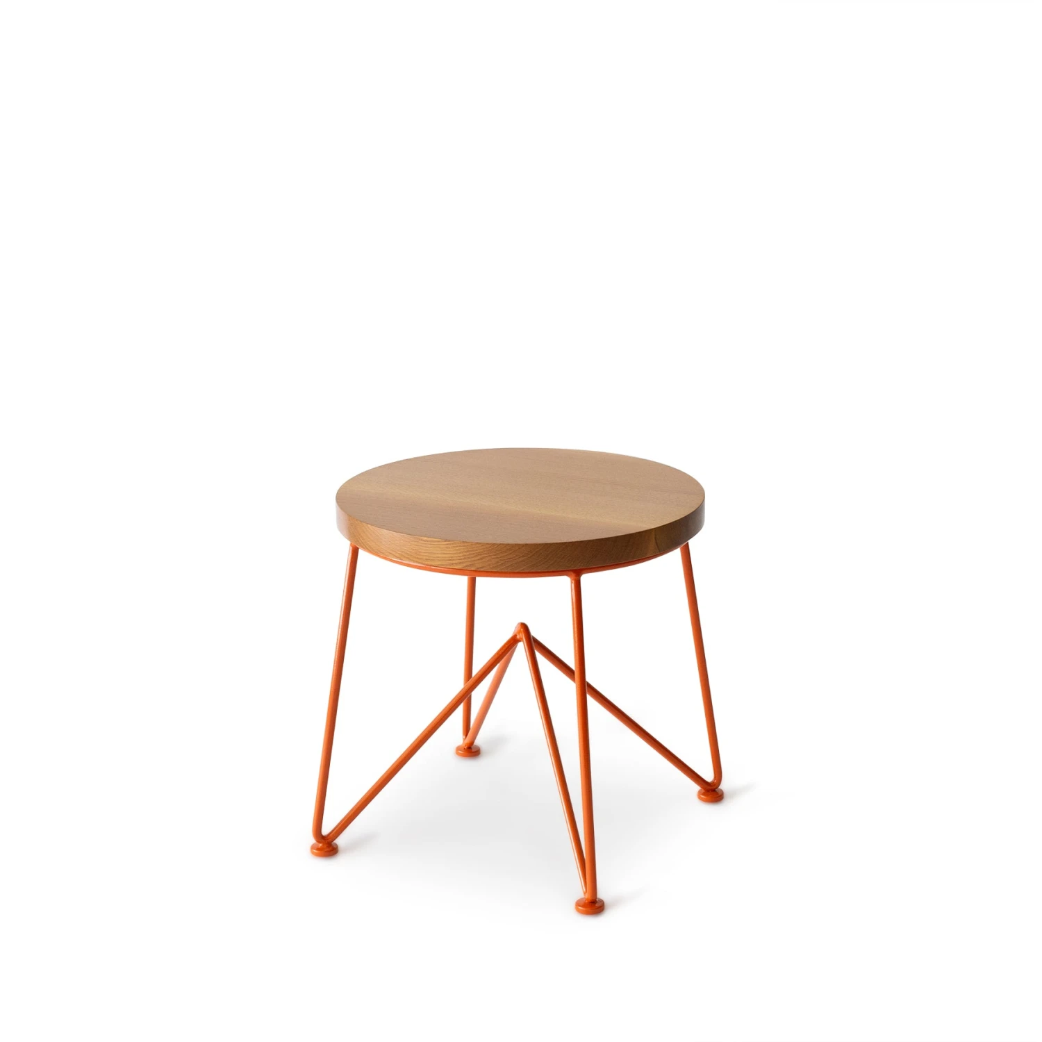 Garza Marfa Furniture Quarter Sawn Oak Stool With Red Orange Base