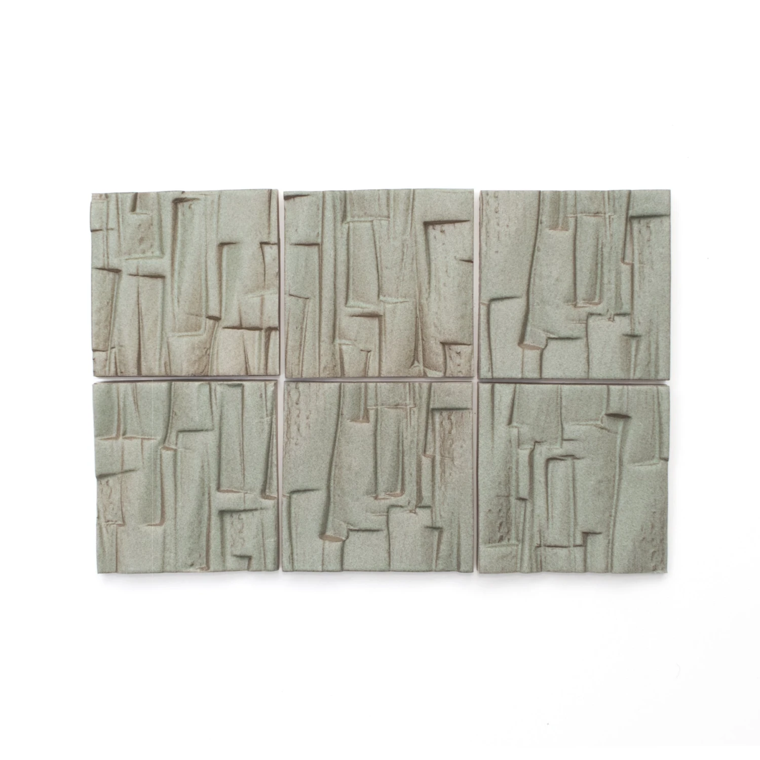 A muted green glaze that shows hints of brown in the nooks and crannies of the textured Stan Bitters tile. Sold individually. Up to 6 tile samples may be ordered online.