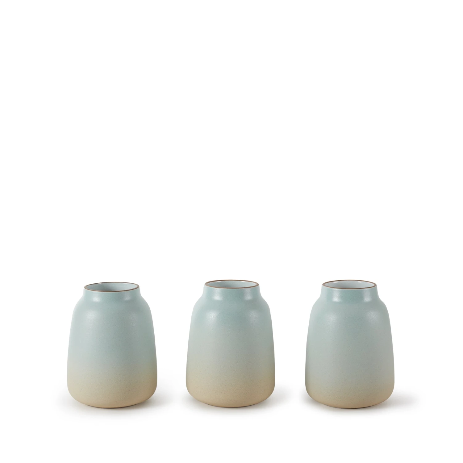 Large, wide, and sturdy the Wide Vase is perfect for the flower lovers out there. Matte on the outside and glossy on the inside, a soft gradient of Aqua and Barley plays with color and perspective both up close and afar. The Wide Vase—along with the Tall Vase—is an expansion upon Edith Heath’s classic Bud Vase design. Originally created as a one of a kind design as part of the Design Series 2, the Wide Vase is slip cast in small batches by Jay Dion in our Los Angeles Studio.
